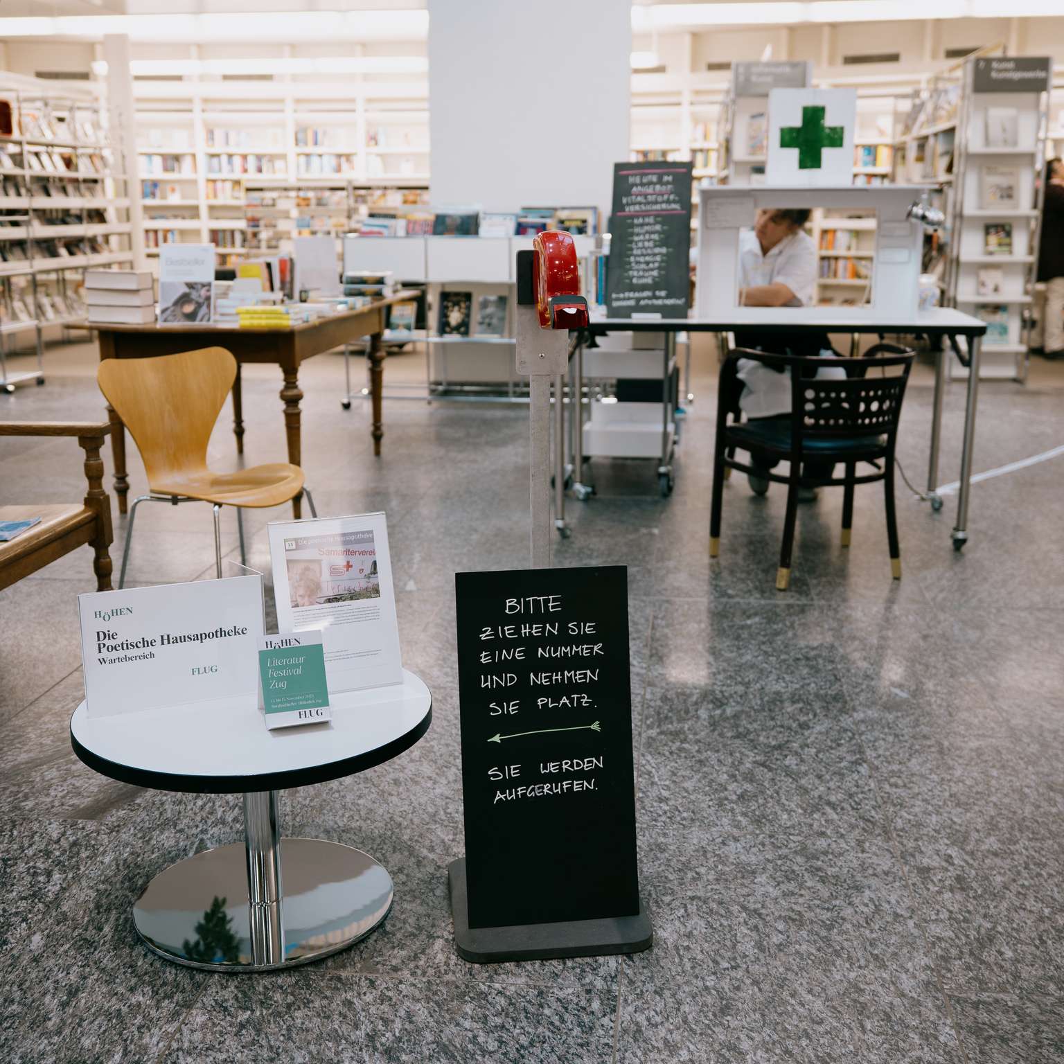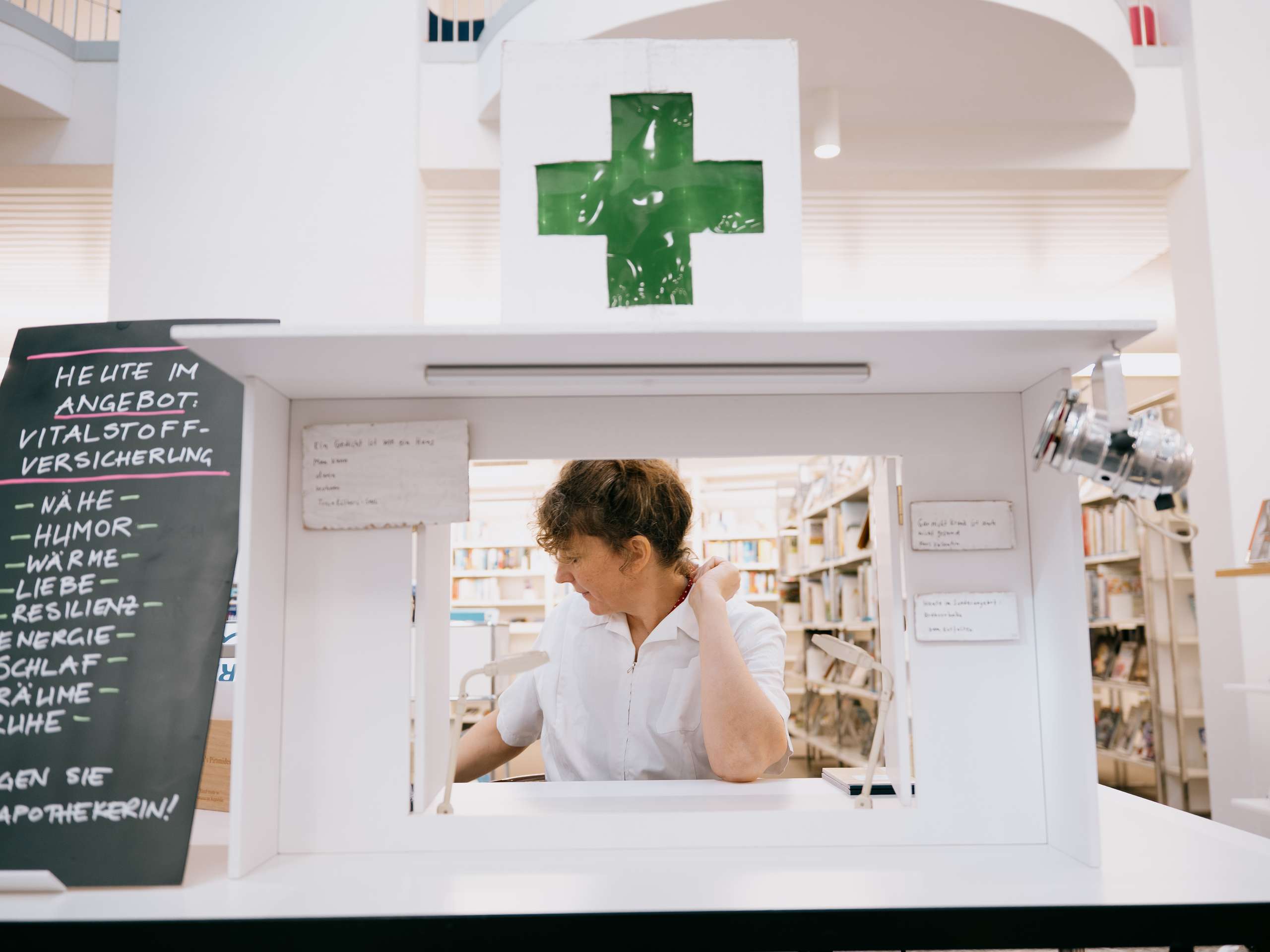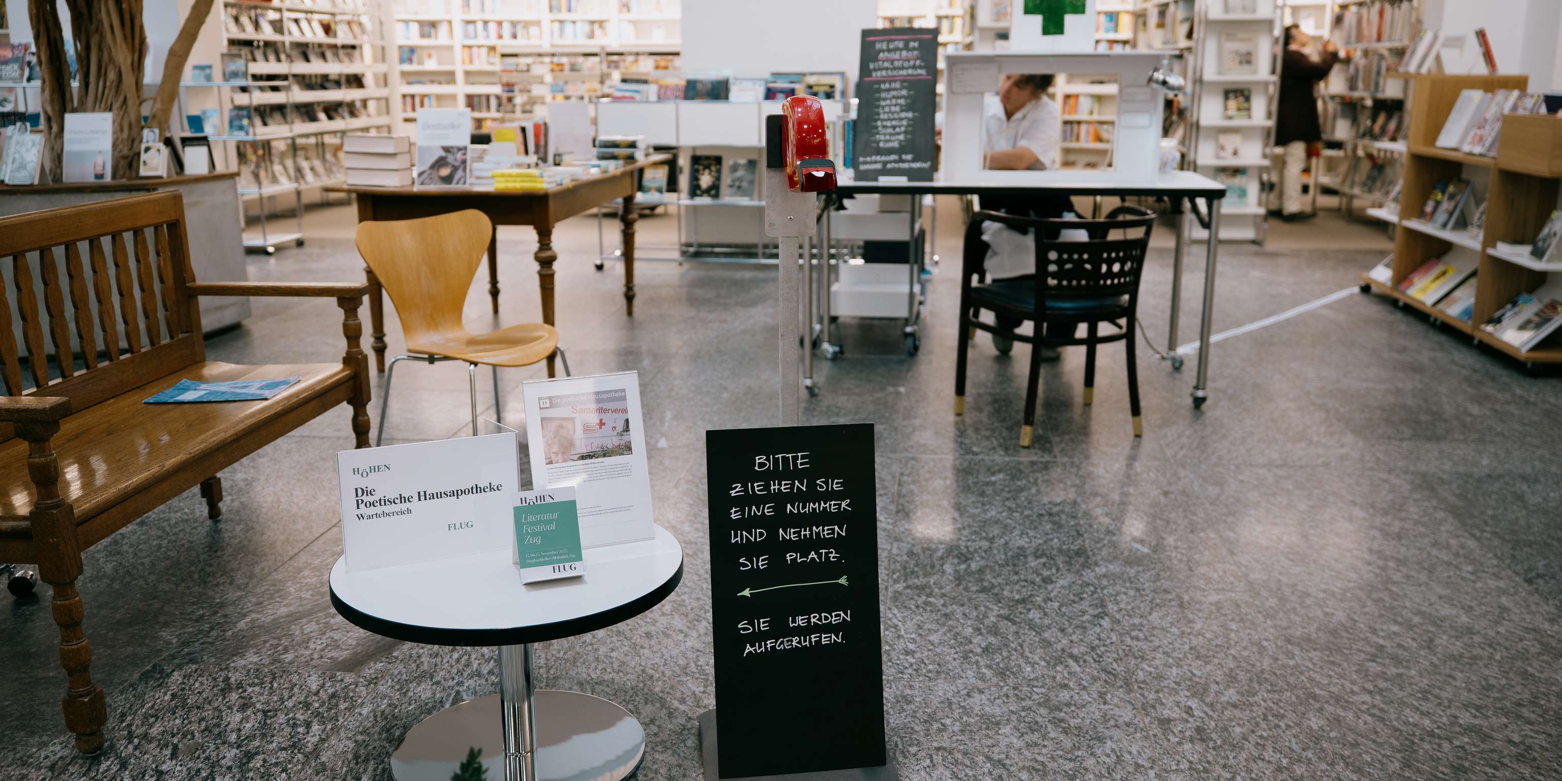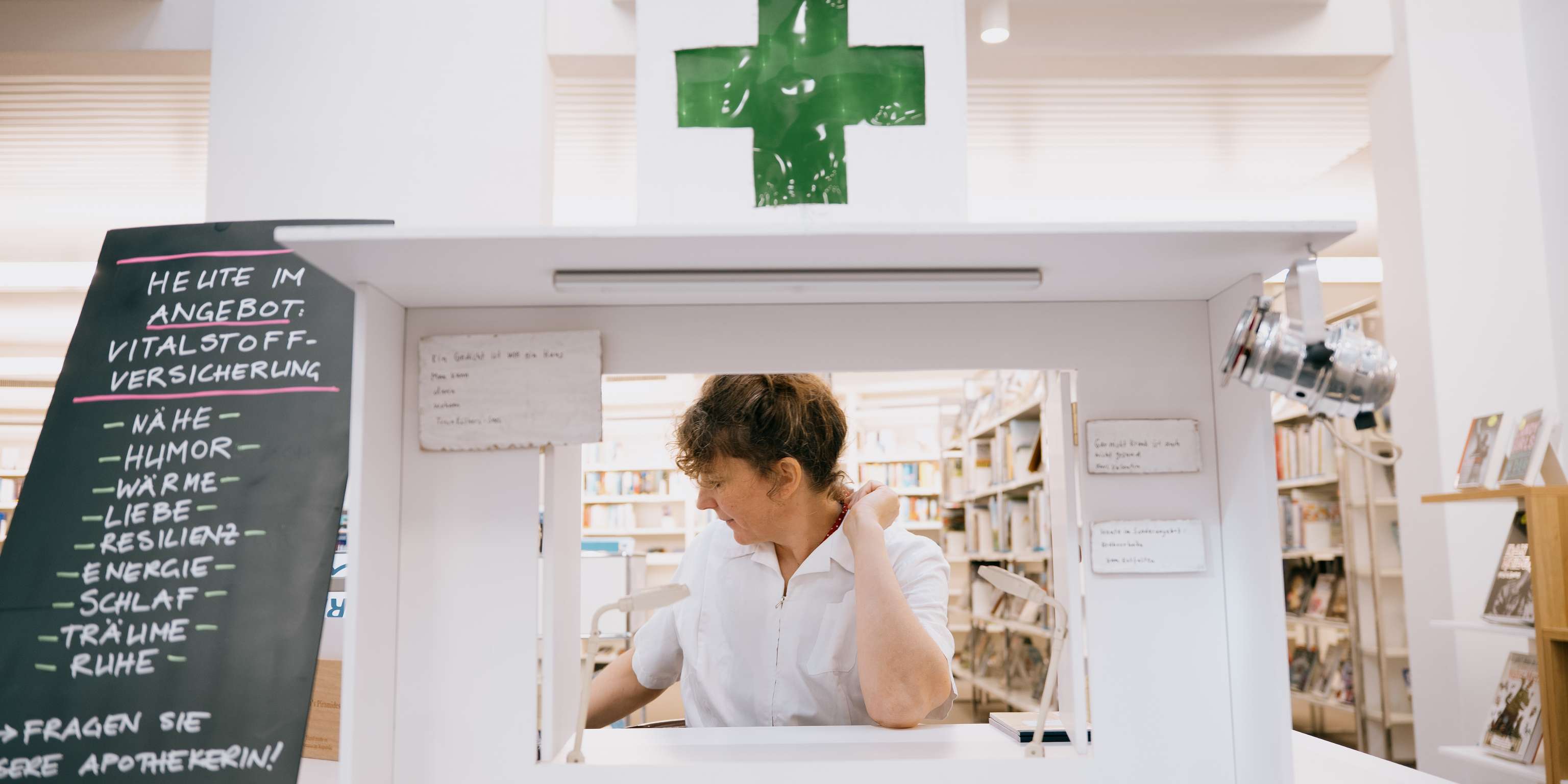 Tragen Sie einen Herzschmerz mit sich herum, vermissen Sie eine Heimat oder eine gute Freundin? Wiegen die Sorgen schwer oder die Träume? Ziehen Sie eine Nummer und nehmen Sie einen Moment Platz im Wartezimmer. Unsere Apothekerin, die Schauspielerin Vivianne Mösli, ist gleich soweit. Sie hat poetische Pillen und lyrischen Lebertran auf Lager, verpasst Ihnen eine metaphorische Massage oder macht einen Reim auf die Ungereimtheiten im Leben.